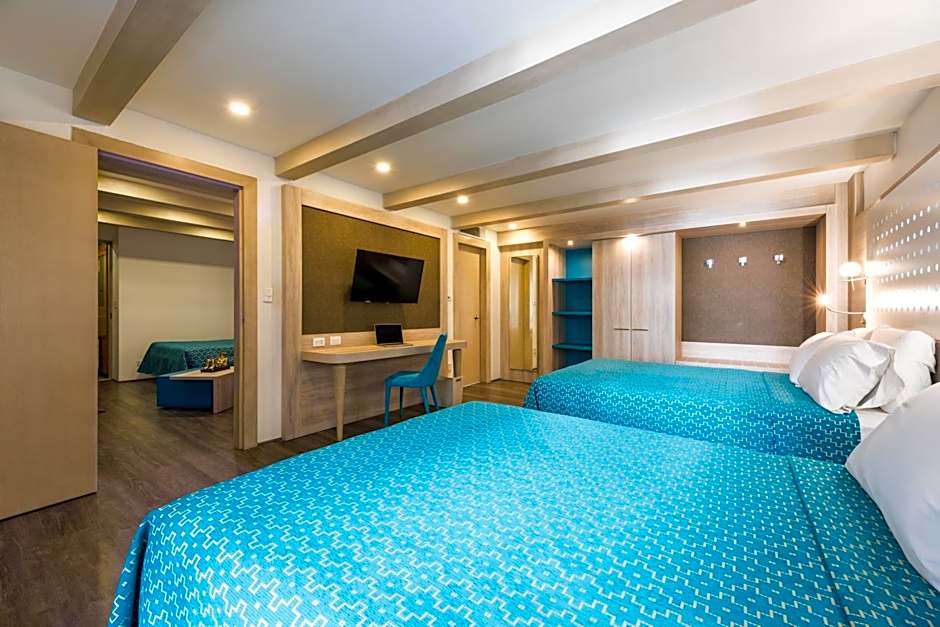 This family room features a rooftop pool and a sauna. Offering free toiletries, this family room includes a private bathroom with a bath, a shower and a bidet. The spacious air-conditioned family room offers a flat-screen TV with cable channels, a tea and coffee maker, a seating area, a dining area as well as an inner courtyard view. The unit has 3 beds.